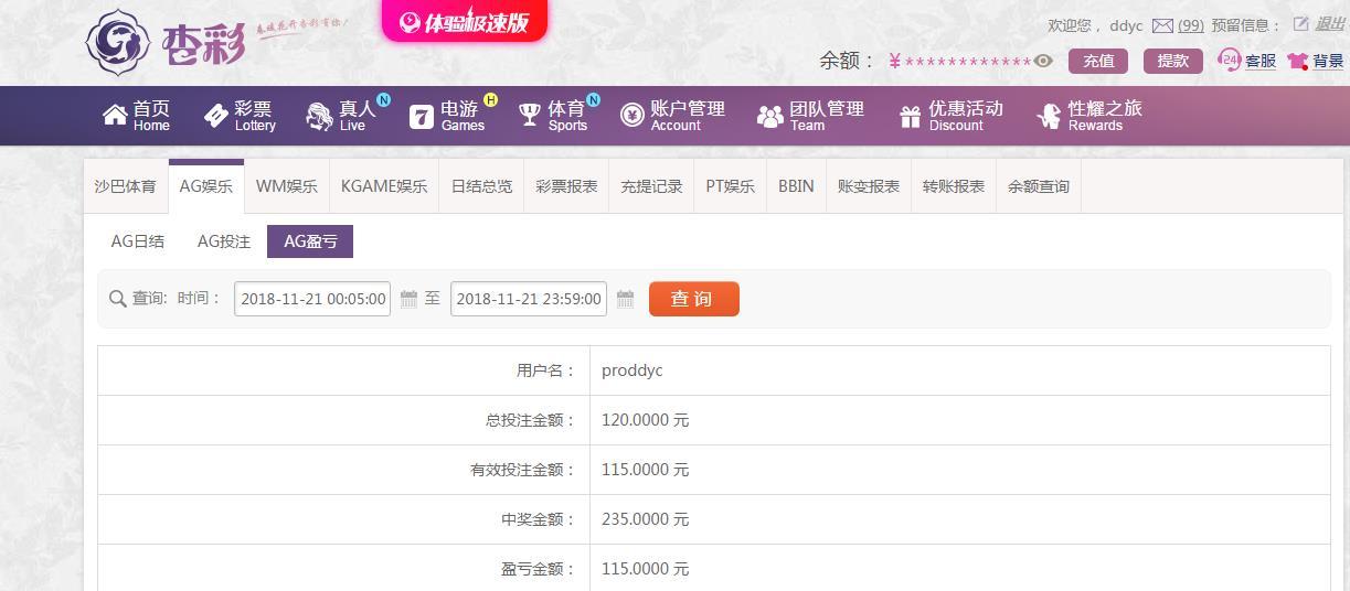 [|赢单奖励] 11月21日杏彩AG盈利115 |