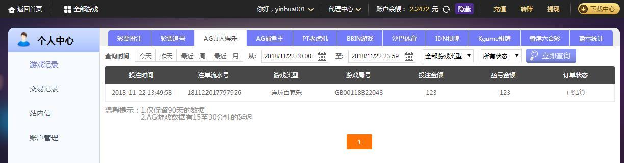 [|输单补偿] 11月22日摩臣亏损123元 |