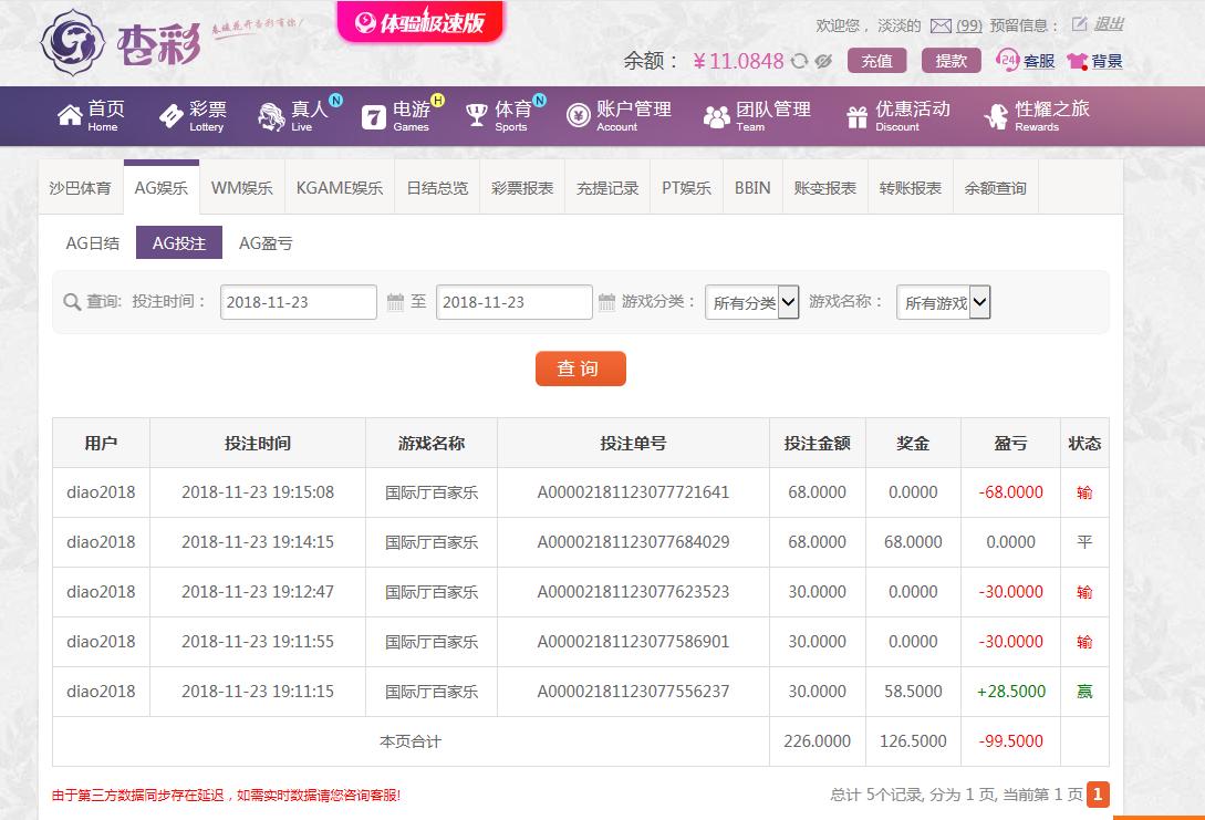 [|输单补偿] 11月23日杏彩亏损99.5元 |