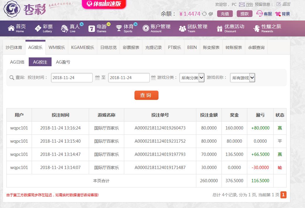 [|赢单奖励] 11月24日杏彩AG盈利116 |