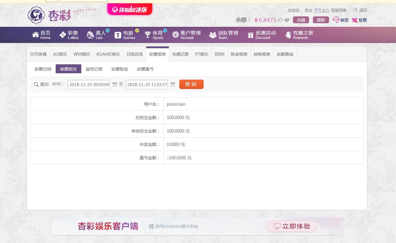 [|输单补偿] 11月25日杏彩亏损100 |