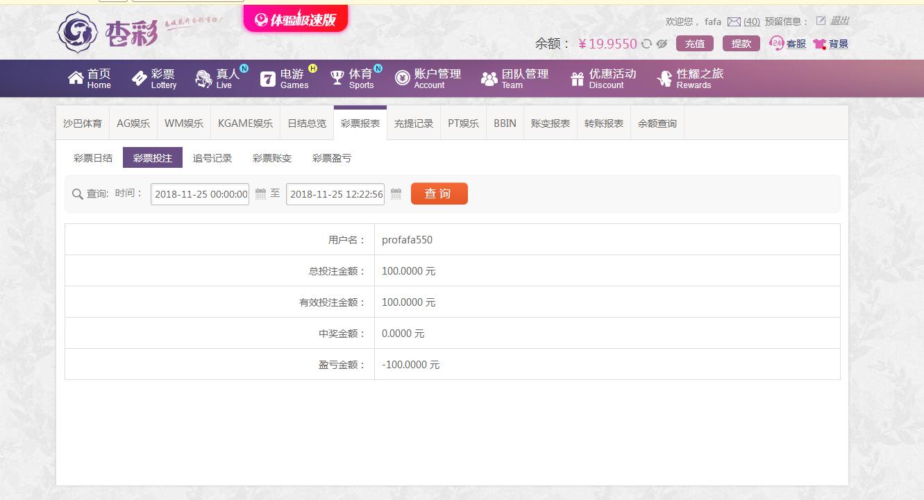 [|输单补偿] 11月25日杏彩亏损100 |