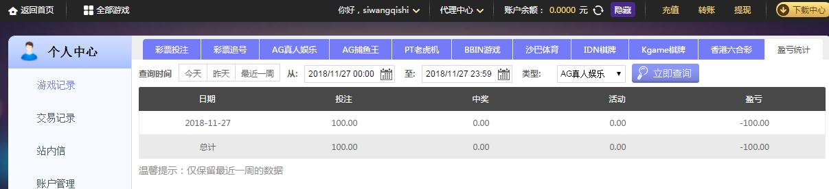 [|输单补偿] 11月27日摩臣亏损100 |