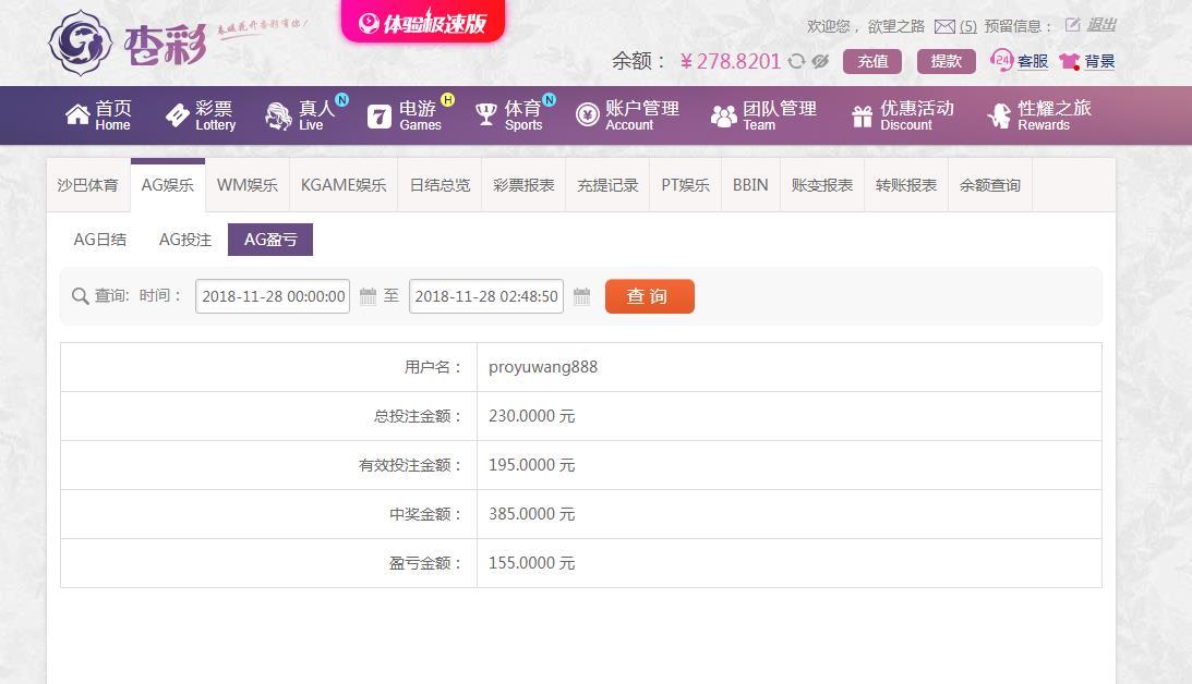 [|赢单奖励] 11月28日杏彩平台盈利155元 |