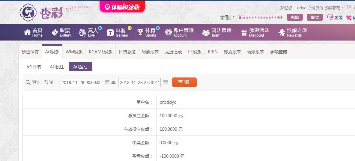 [|输单补偿] 11月28日杏彩亏损100元 |