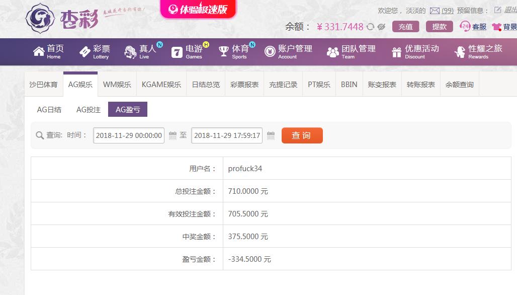 [|输单补偿] 11月29日杏彩亏损334 |