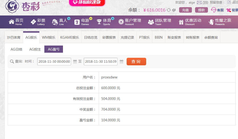 [|赢单奖励] 11月30日杏彩盈利104元 |