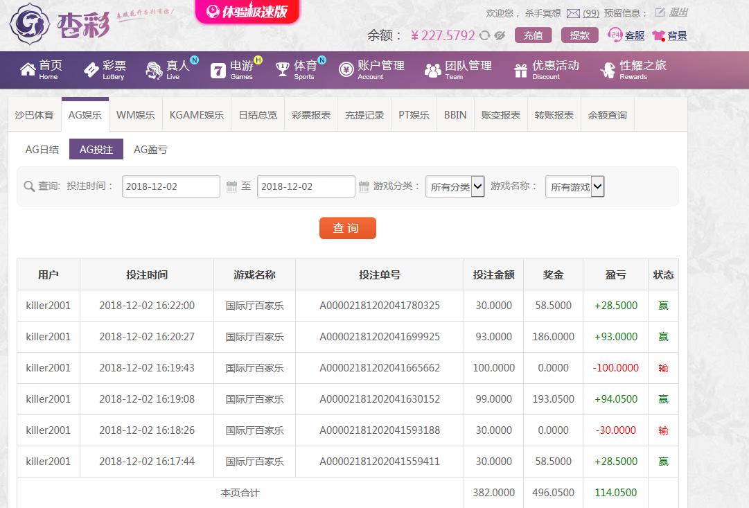[|赢单奖励] 12月2日杏彩盈利114元 |