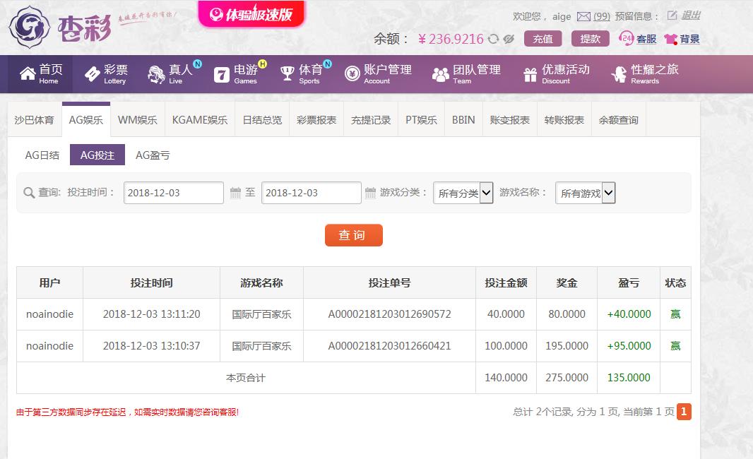 [|赢单奖励] 12月3日杏彩盈利135元 |