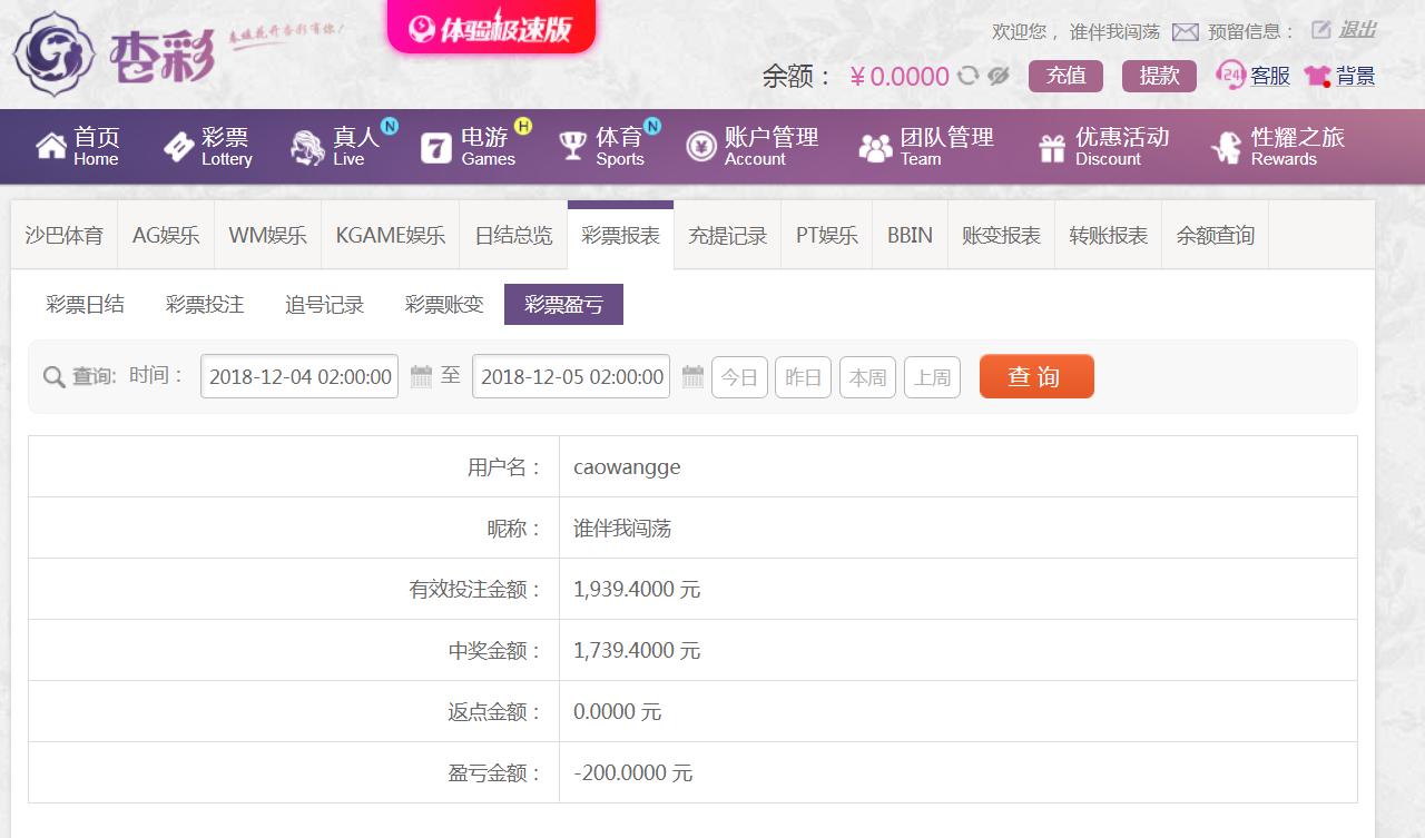 [|输单补偿] 12月4日在杏彩娱乐平台亏损200元 |