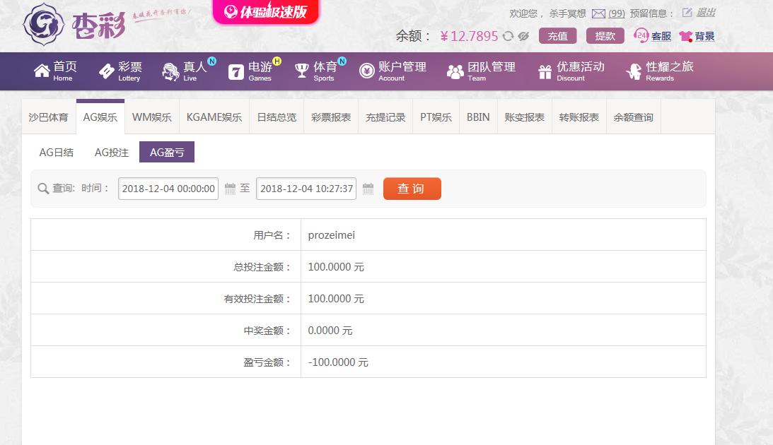 [|输单补偿] 12月04日杏彩亏损100 |