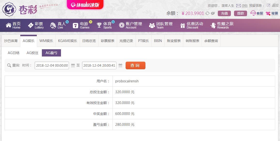 [|赢单奖励] 12月4日杏彩平台赢280元 |