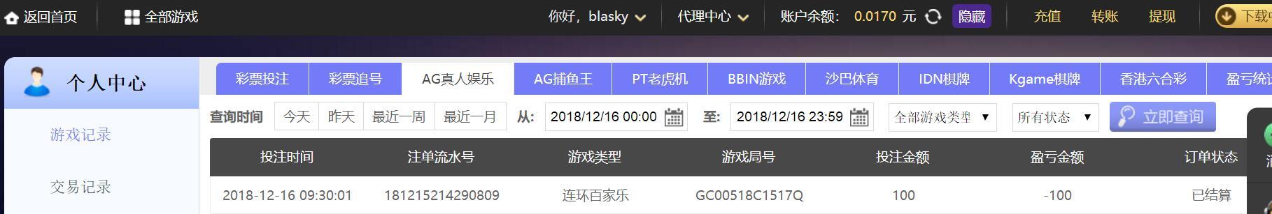 [|输单补偿] 12月16日摩臣平台亏损100元 |