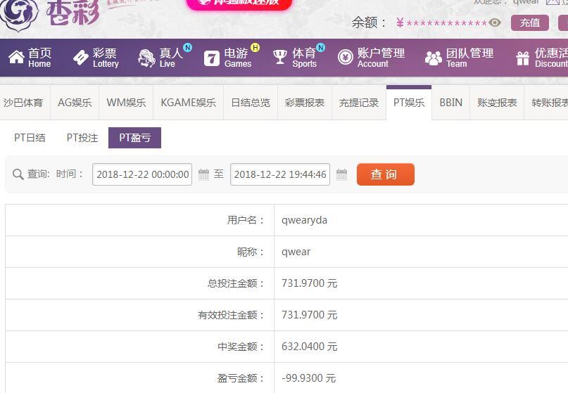 [|输单补偿] 12月22日杏彩亏损100元 |