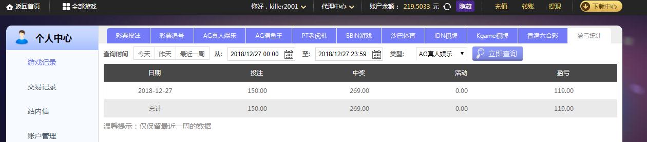 [|赢单奖励] 12月27日摩臣盈利119元 |