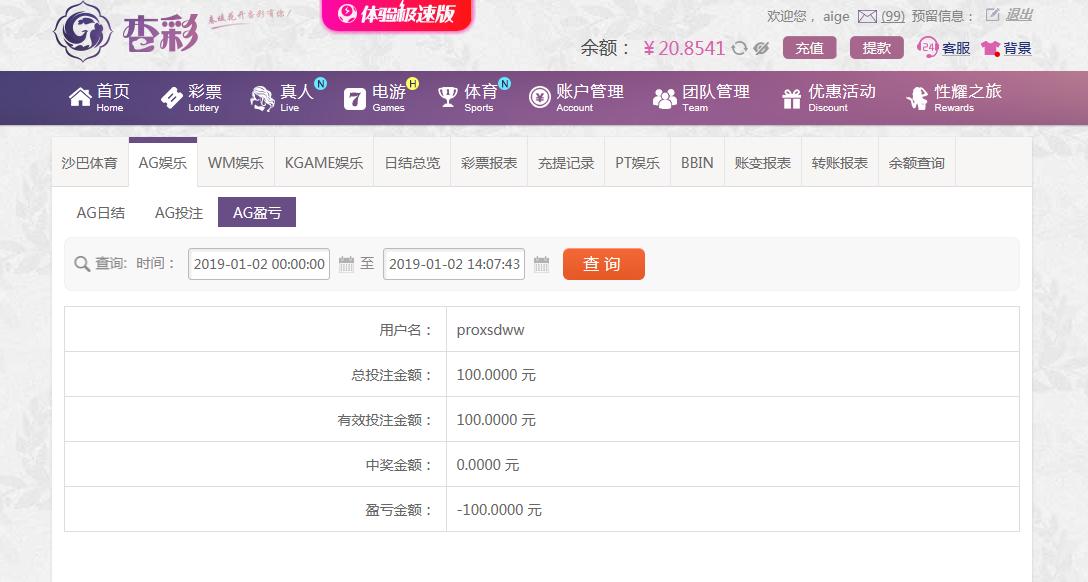 [|输单补偿] 1月2日杏彩亏损100元 |