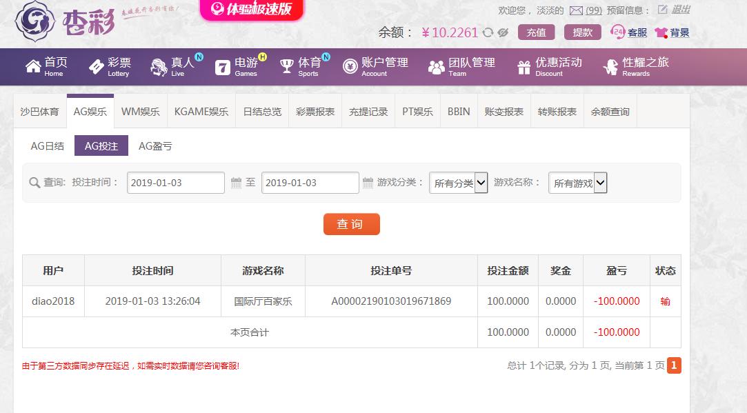 [|输单补偿] 1月3日杏彩亏损100元 |