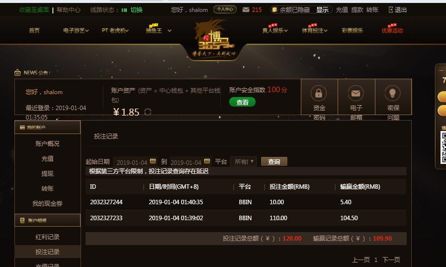 [|赢单奖励] 1月4日博马盈利109元 |