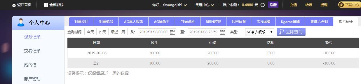 [|输单补偿] 1月8日摩臣亏损100 |