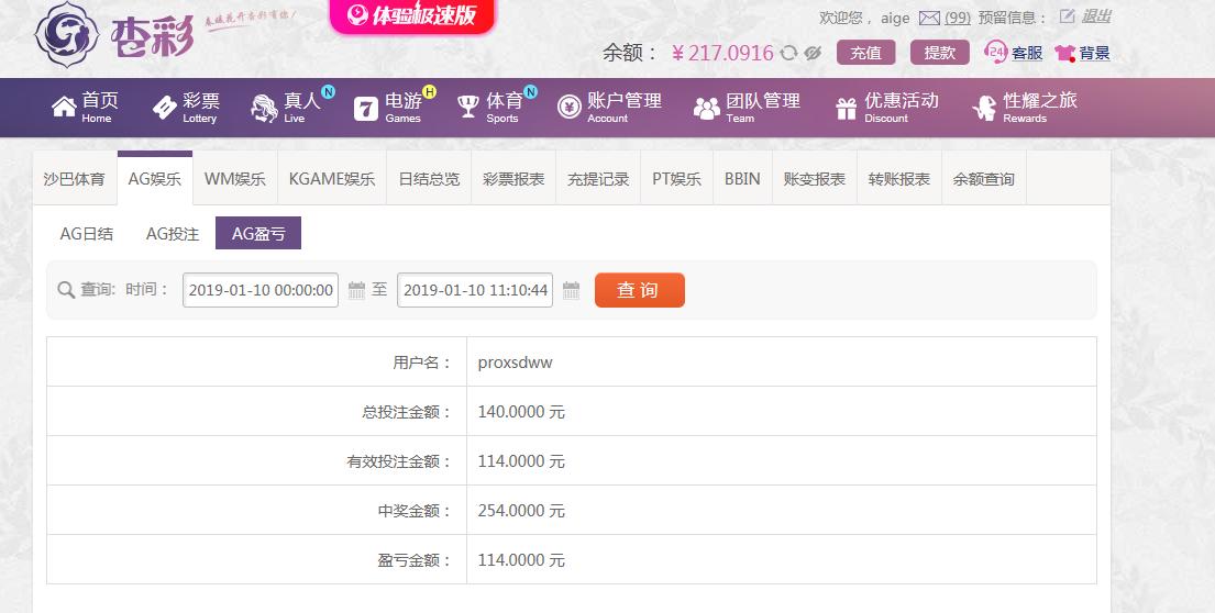[|赢单奖励] 1月10日杏彩盈利114 |