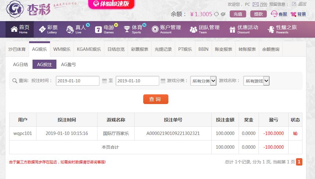 [|输单补偿] 1月10日杏彩亏损100元 |