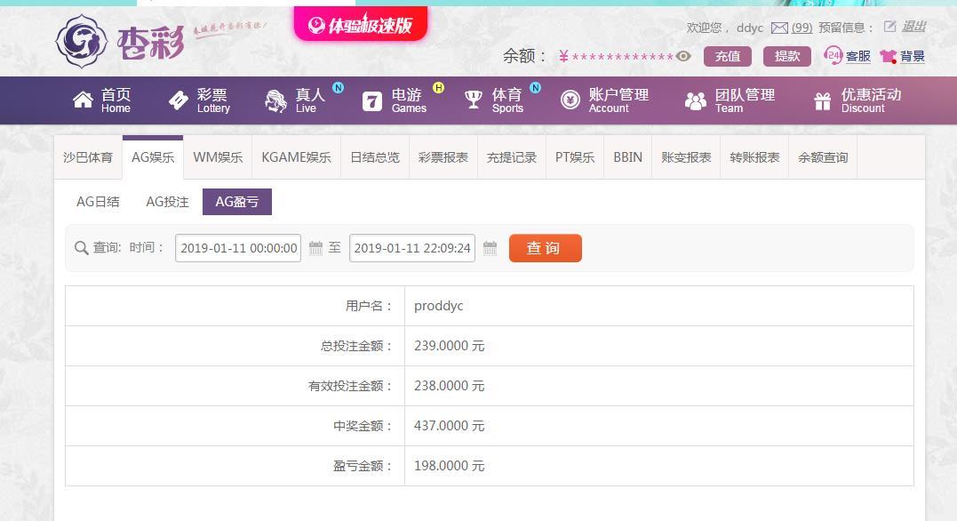 [|赢单奖励] 1月11日杏彩盈利198元 |