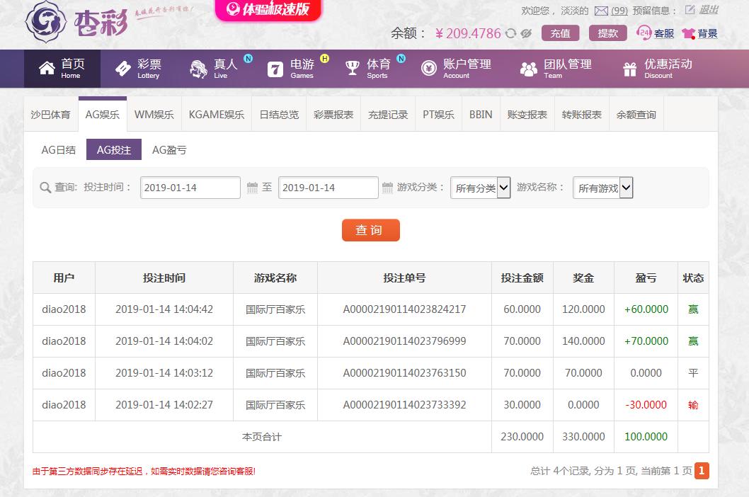 [|赢单奖励] 1月14日杏彩盈利100 |