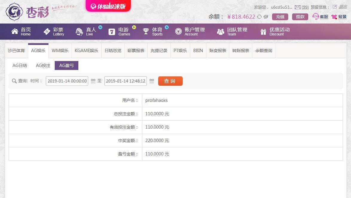 [|赢单奖励] 1月14杏彩ag平台投注赢110 |
