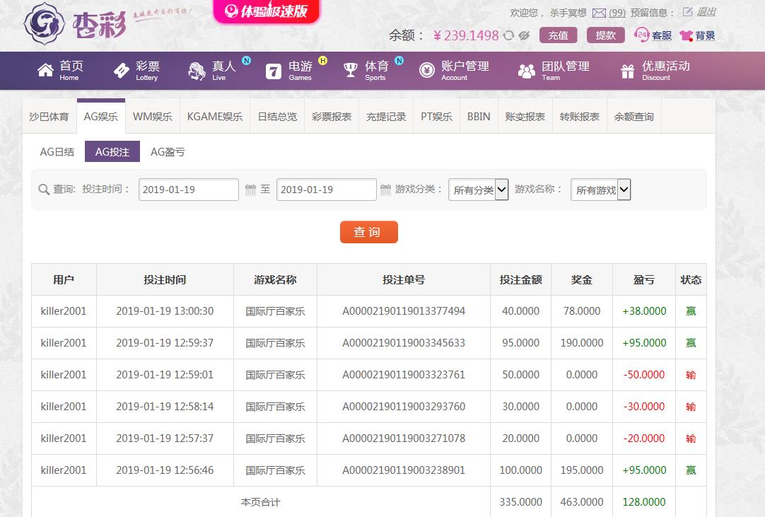 [|赢单奖励] 1月19日杏彩盈利128元 |