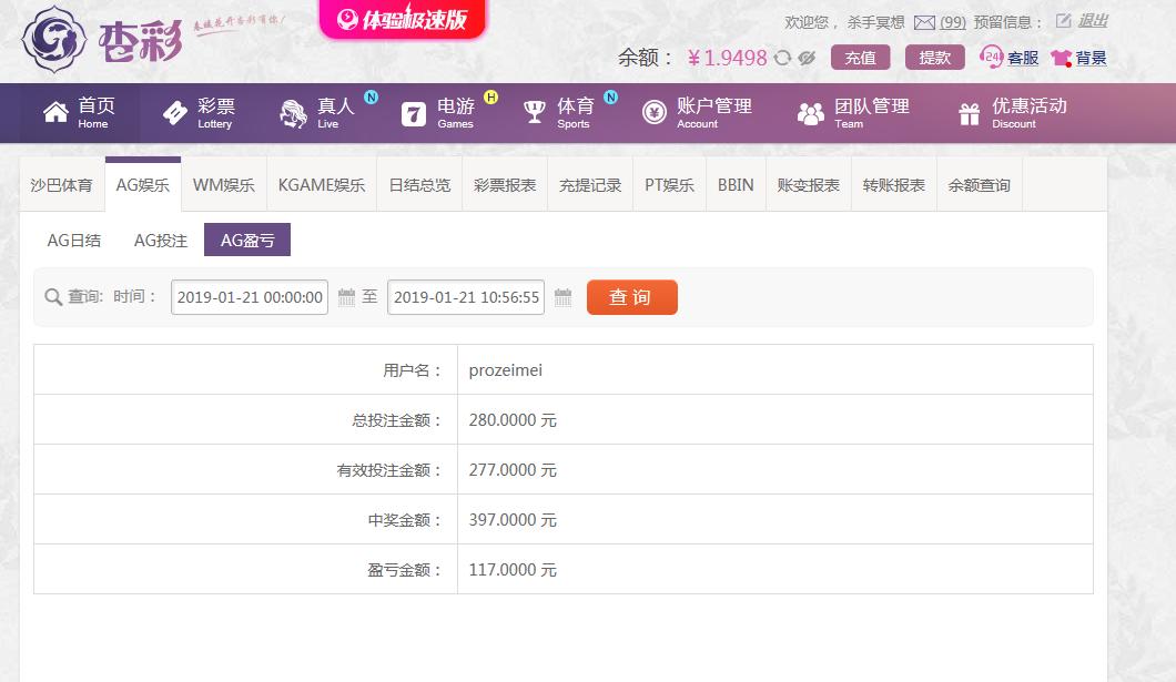 [|赢单奖励] 1月21日杏彩盈利117元 |