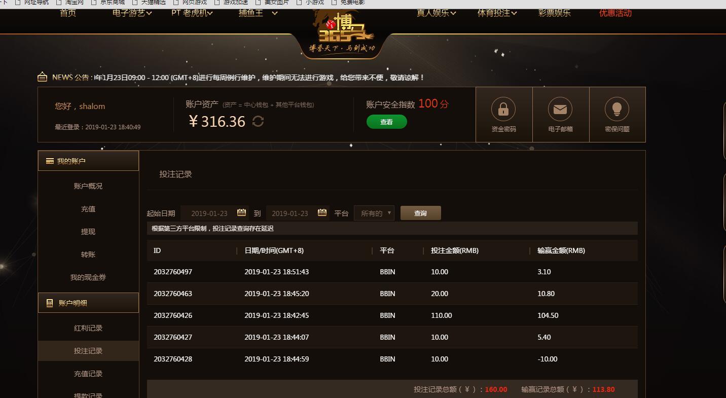 [|赢单奖励] 1月23日博马盈利113元 |