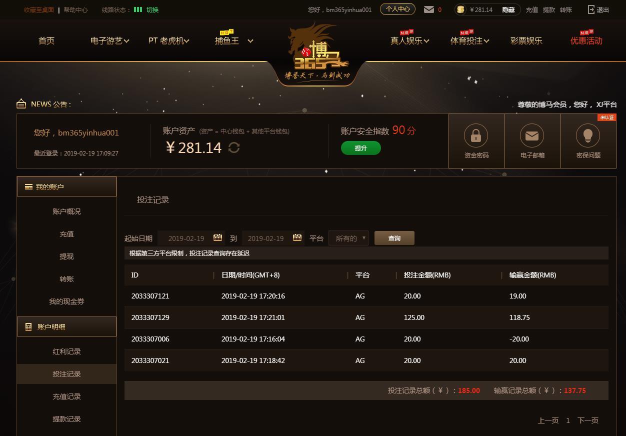 2月19日博马盈利137元