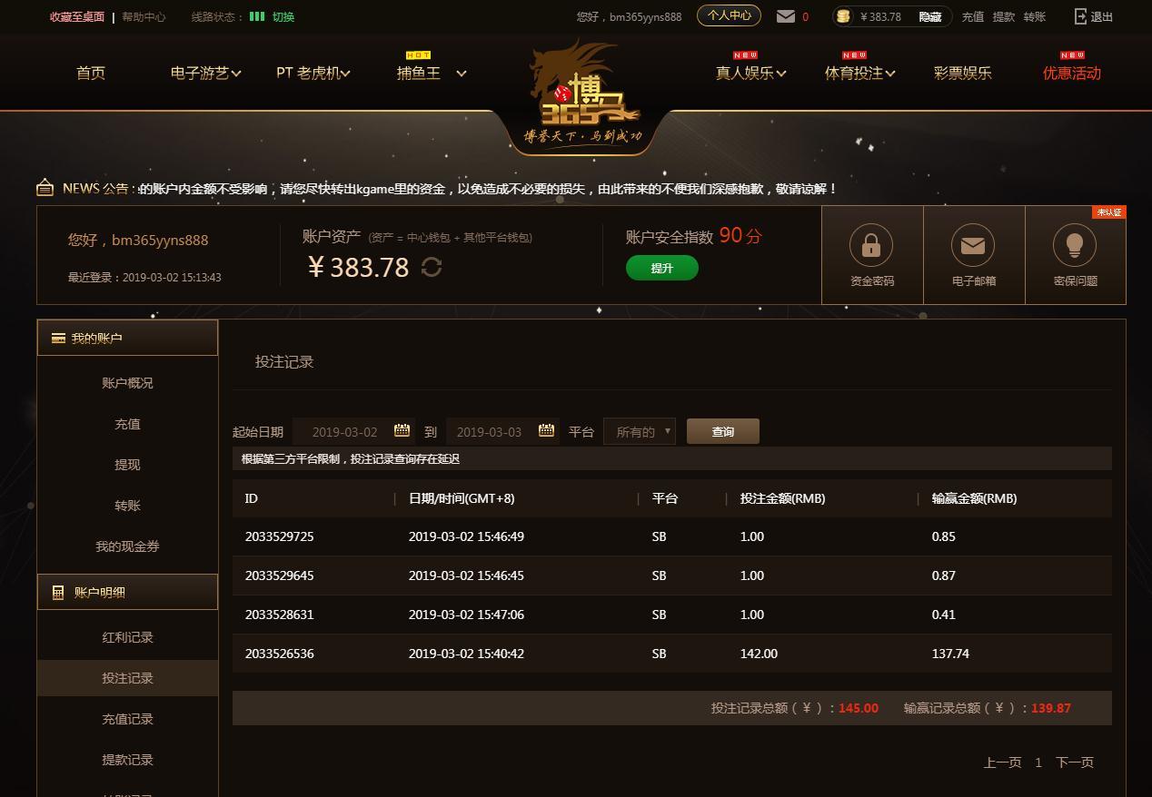 [|赢单奖励] 3月3日杏彩盈利139 |