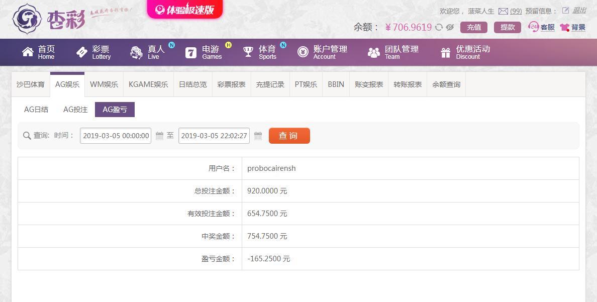 [|输单补偿] 3月5日杏彩平台投注输165 |