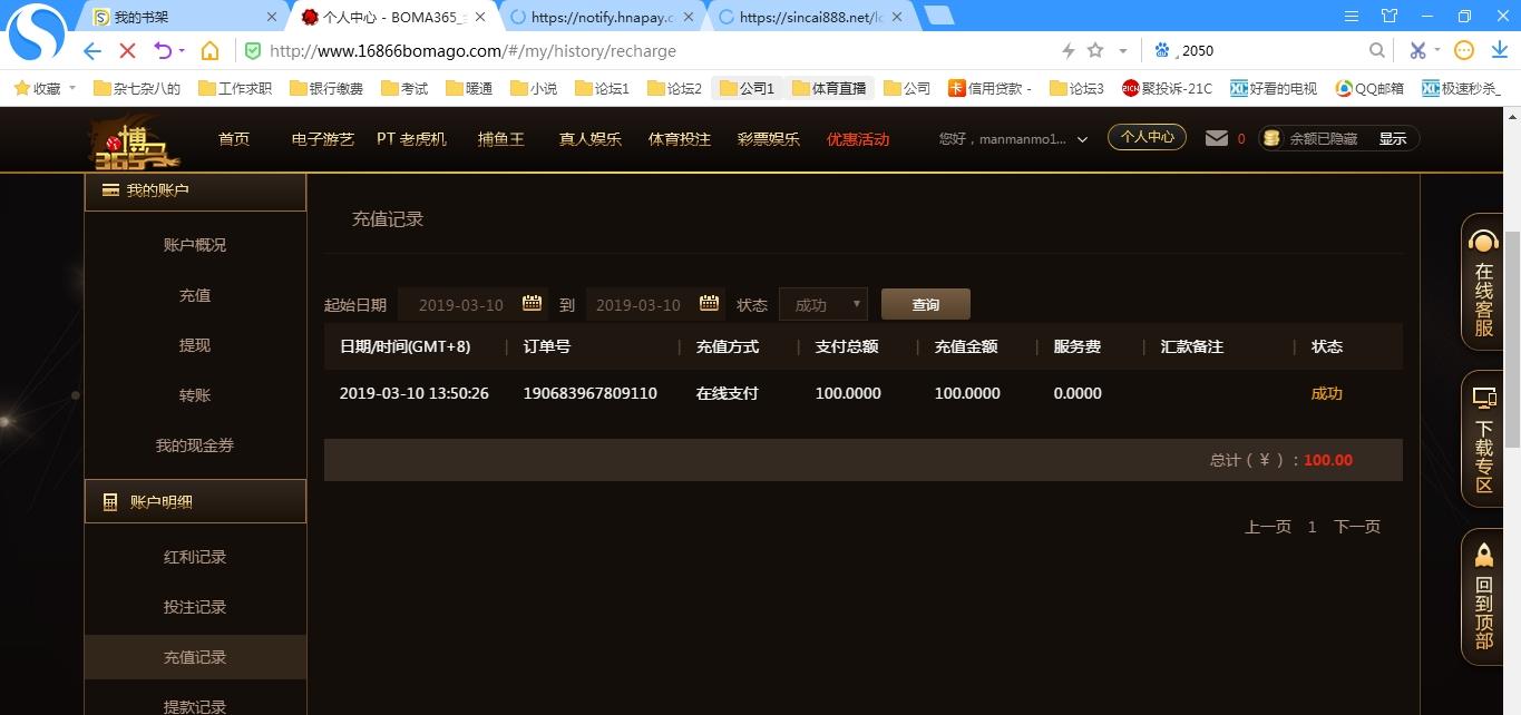 [|赢单奖励] 3.10博马盈利308元 |