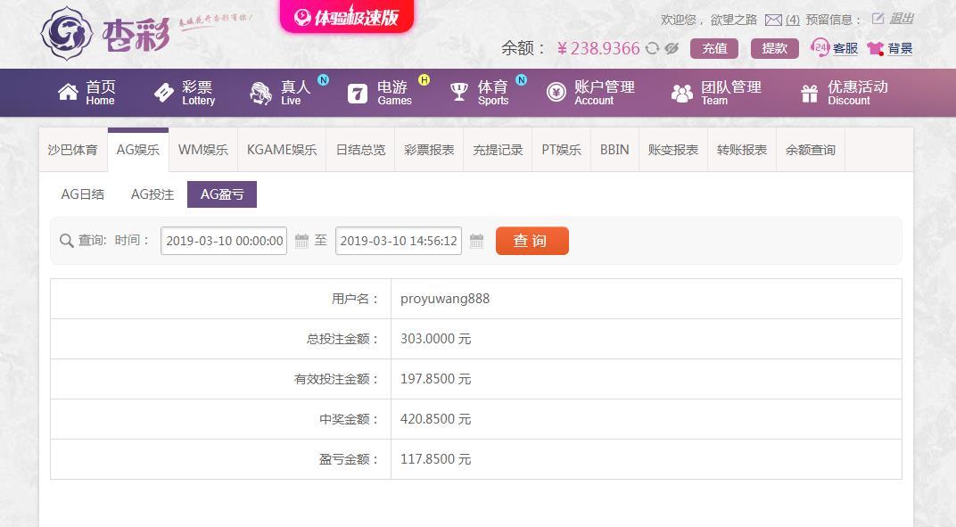 [|赢单奖励] 3月10日杏彩平台盈利117元 |