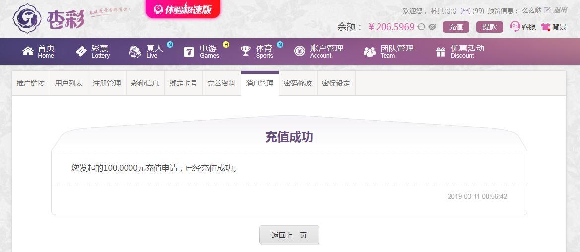 [|赢单奖励] 3月11日杏彩盈利114 |