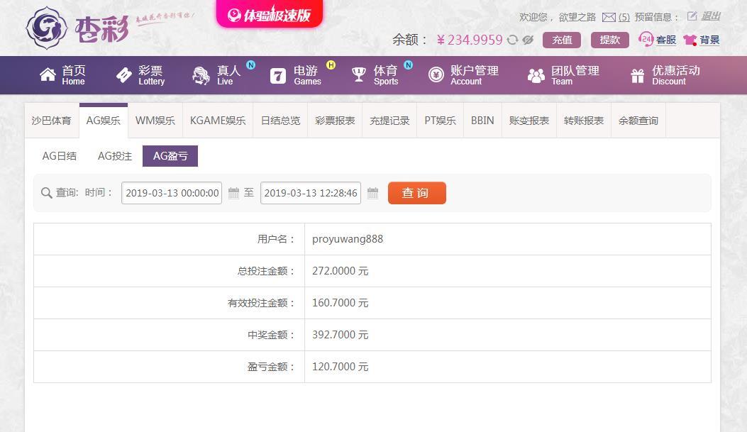 [|赢单奖励] 3月13日杏彩平台盈利120元 |