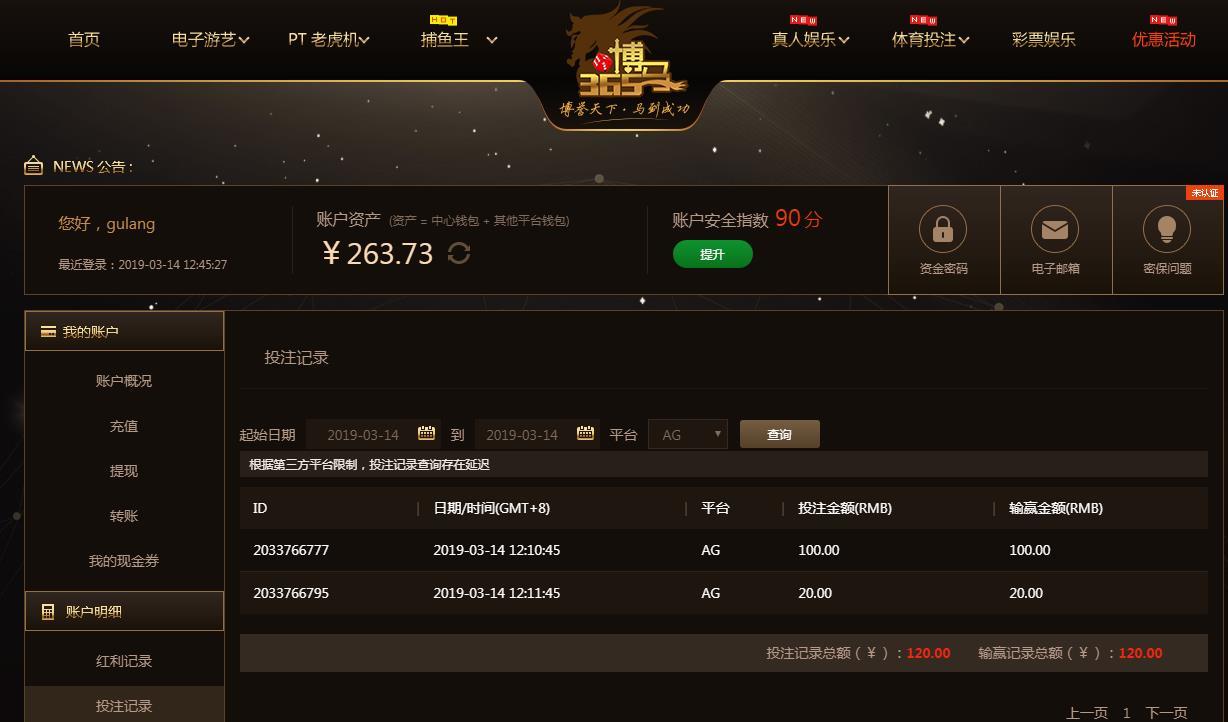 [|赢单奖励] 3月14日博马平台盈利120元 |