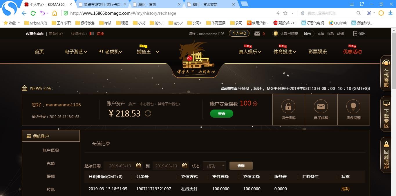 [|赢单奖励] 3.14博马盈利117元 |