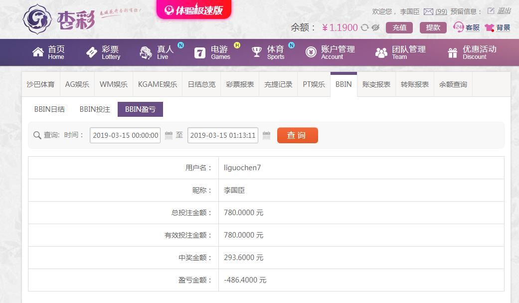 [|输单补偿] 3月15日杏彩真人输486元 |
