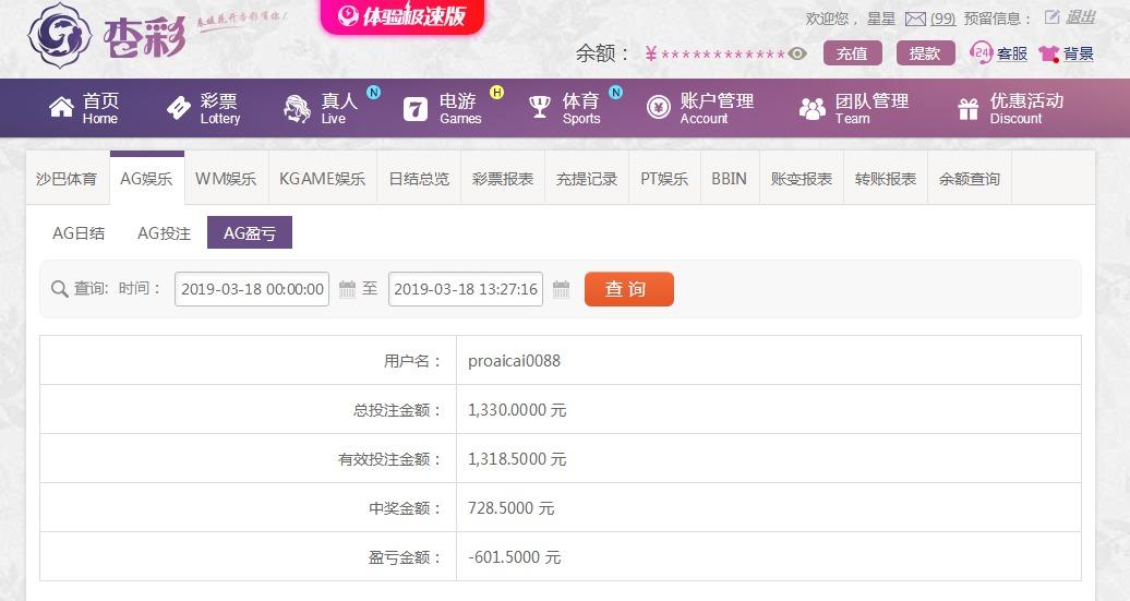 [|输单补偿] 3月18日杏彩平台输602元 |