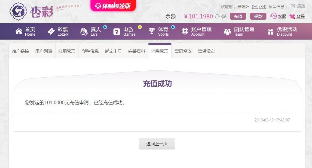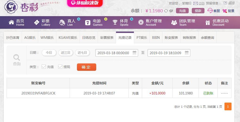 [|赢单奖励] 3月19日杏彩盈利100元 |