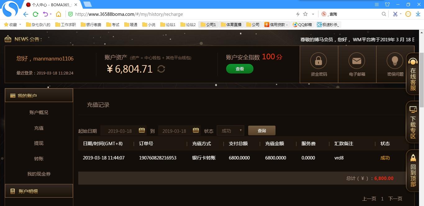 [|赢单奖励] 3.21博马盈利100元 |