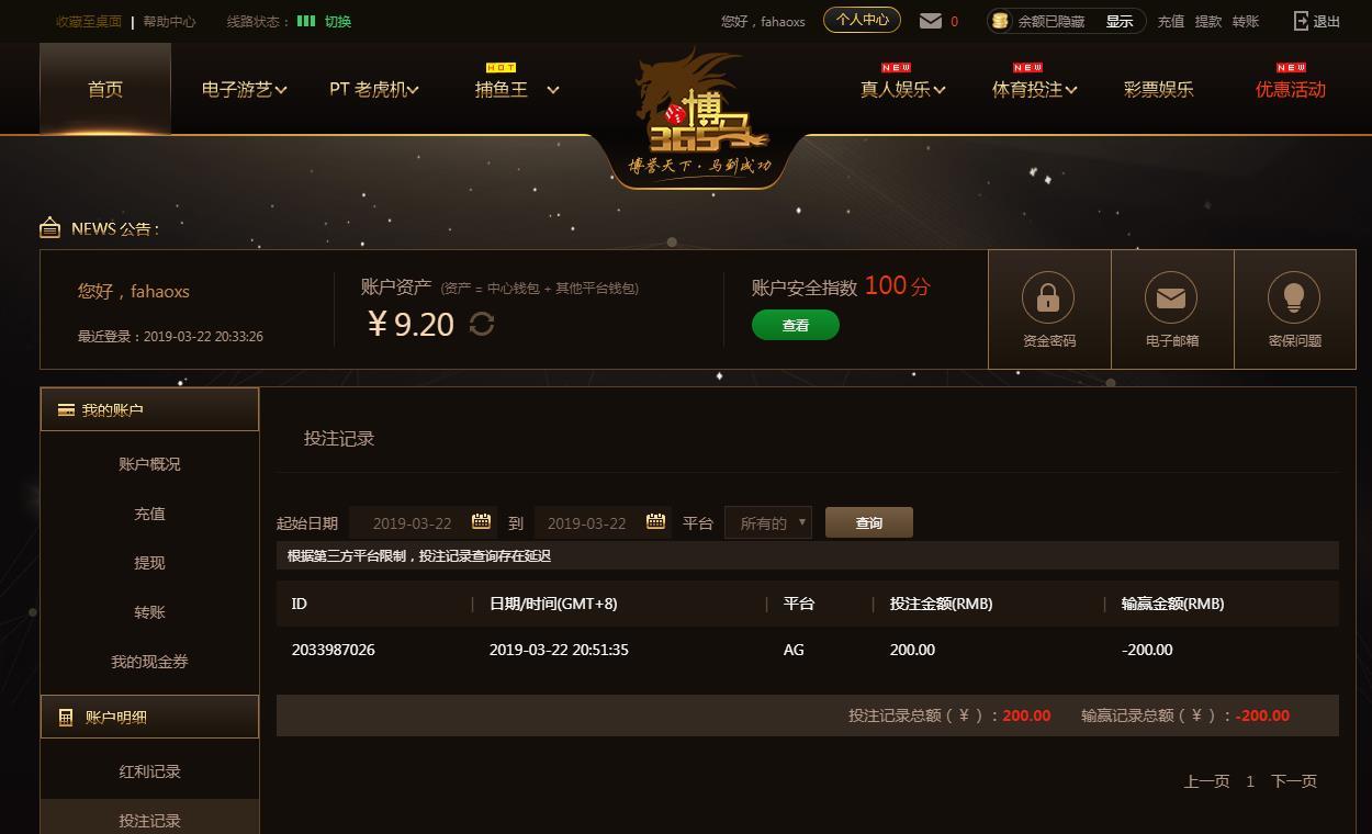 [|输单补偿] 3月22日博马亏损200元 |