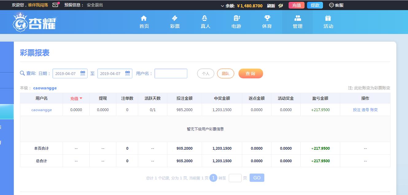 [|赢单奖励] 04月07日在杏耀平台赢217元 |