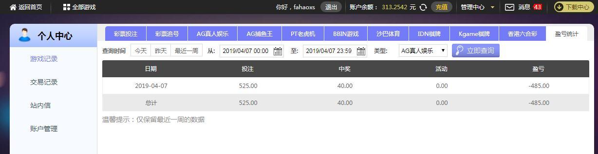 [|输单补偿] 4月7日摩臣平台亏损485元 |