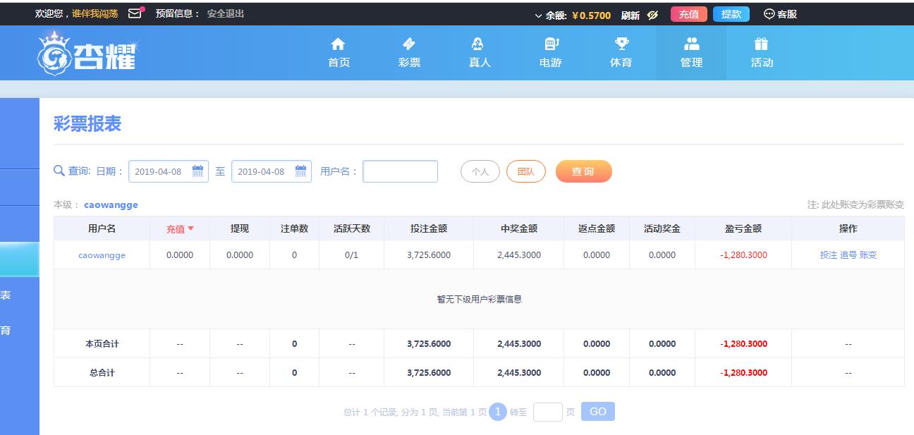 [|输单补偿] 04月08日在杏耀平台输1280元 |