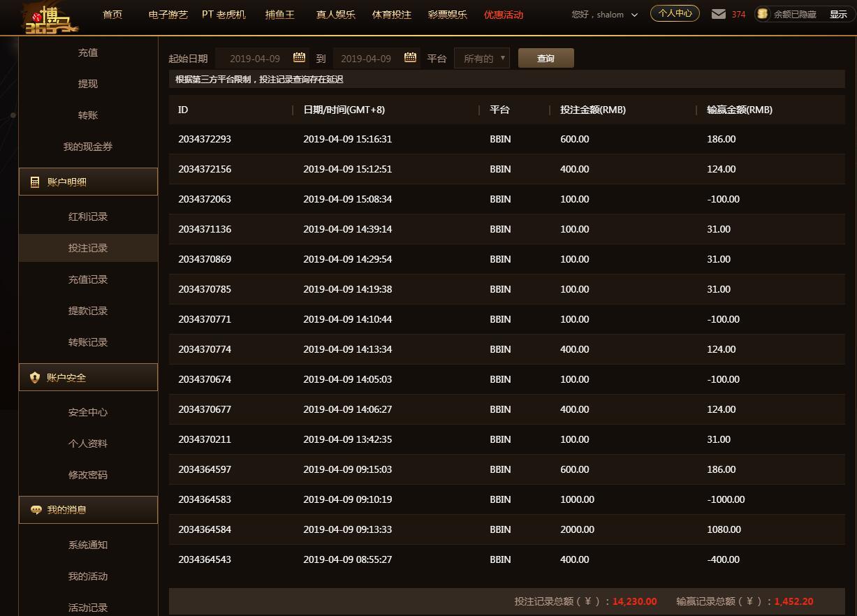 [|赢单奖励] 4月9日博马盈利1452元 |