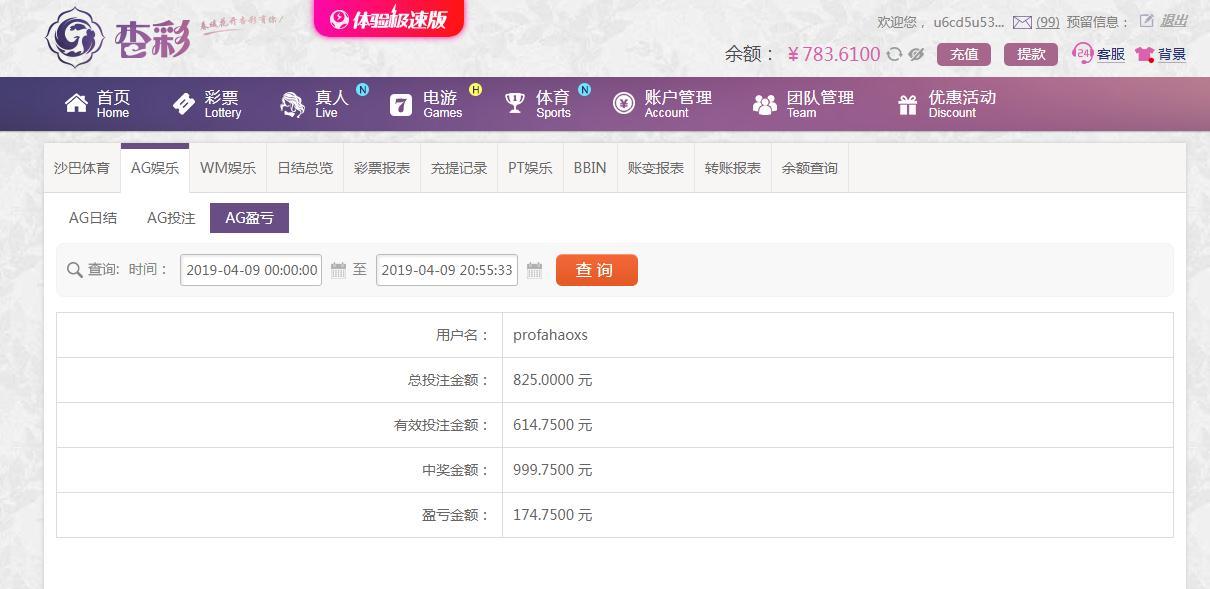 [|赢单奖励] 4月9日杏彩盈利174元 |